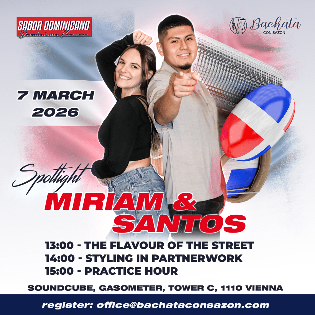 Next Sabor Dominicano workshop coming up on 7 March 2026! Happy to welcome Miriam and Santos from Atrevete Belgium – get ready for smooth partnerwork and street vibe – 100% Dominican flow 🇩🇴